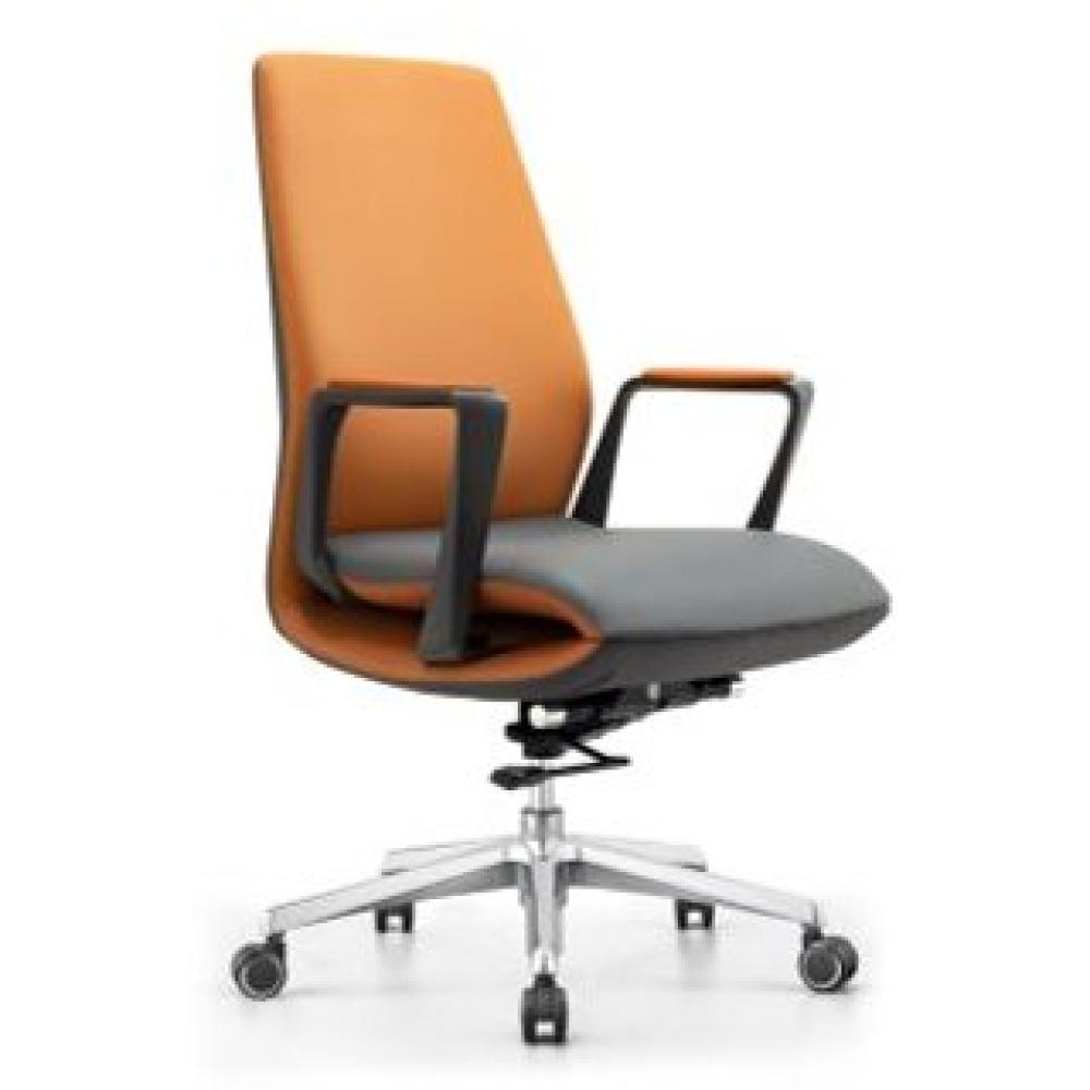 كرسي جلد دوار - مقعد رمادي وظهر برتقالي